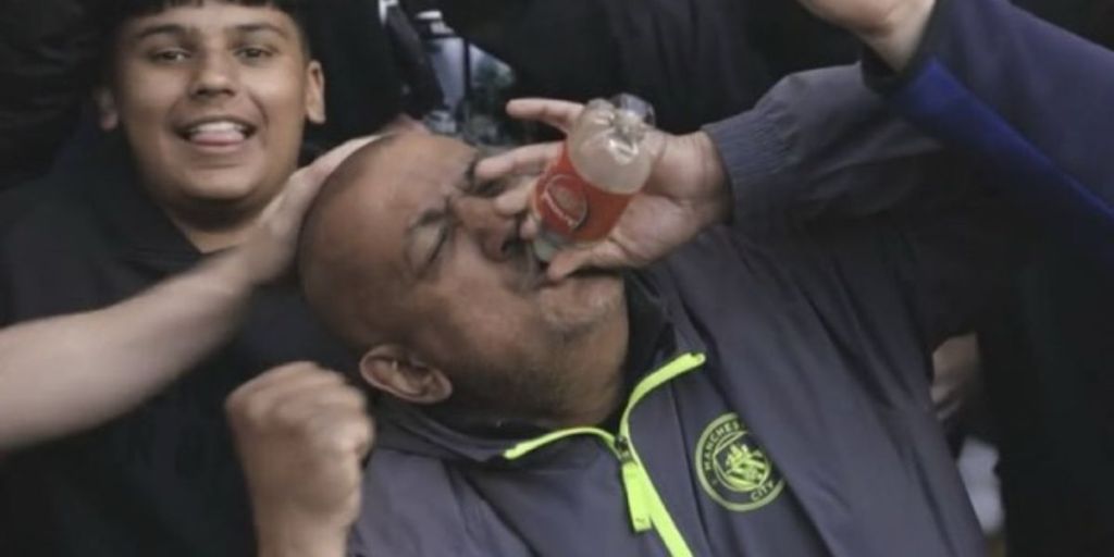 Un hincha del Manchester City se volvió protagonista inesperado de la Premier League tras burlarse del Arsenal bebiendo de una botella con el escudo del club rival, en medio de un partido clave por el título.